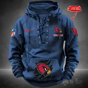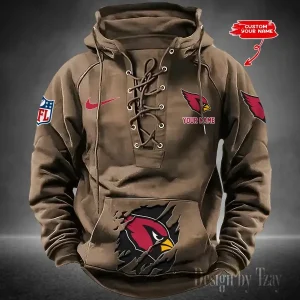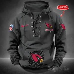 Arizona Cardinals Lace-Up Cross V-Neck Drawstring Hoodie