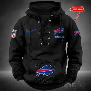 Buffalo Bills Lace-Up Cross V-Neck Drawstring Hoodie