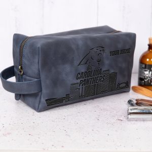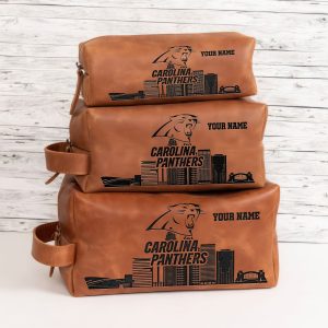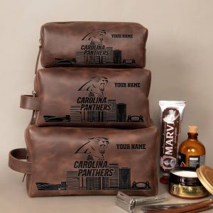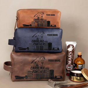 Carolina Panthers Leather Toiletry Bag For Men, Custom Your Name, 2D In Leather Dopp Kit Bag, Football Fan Gifts, Gift For Dad V01