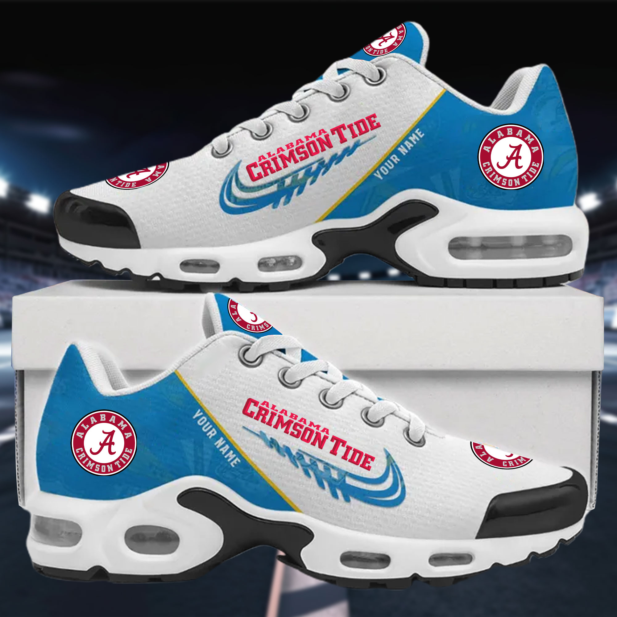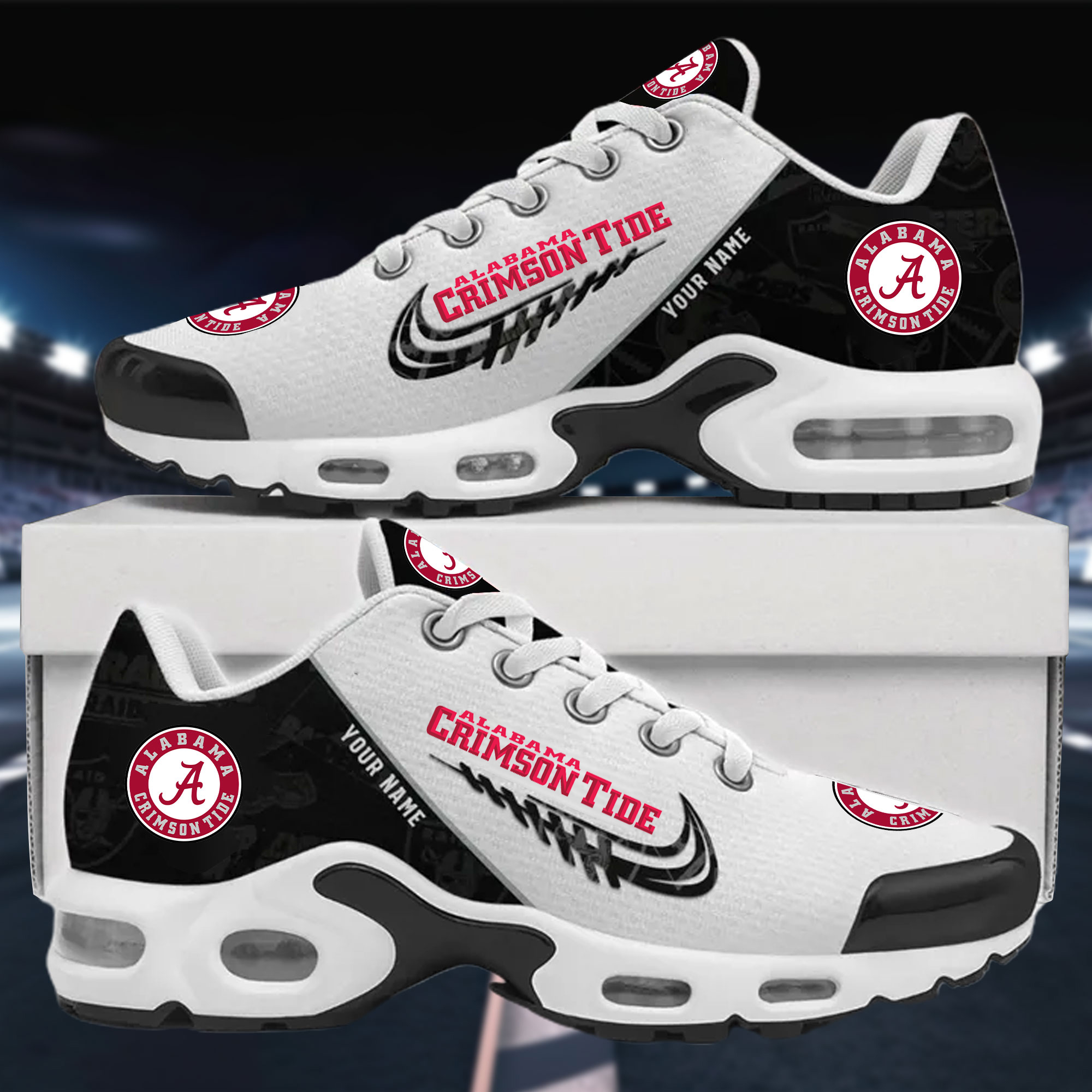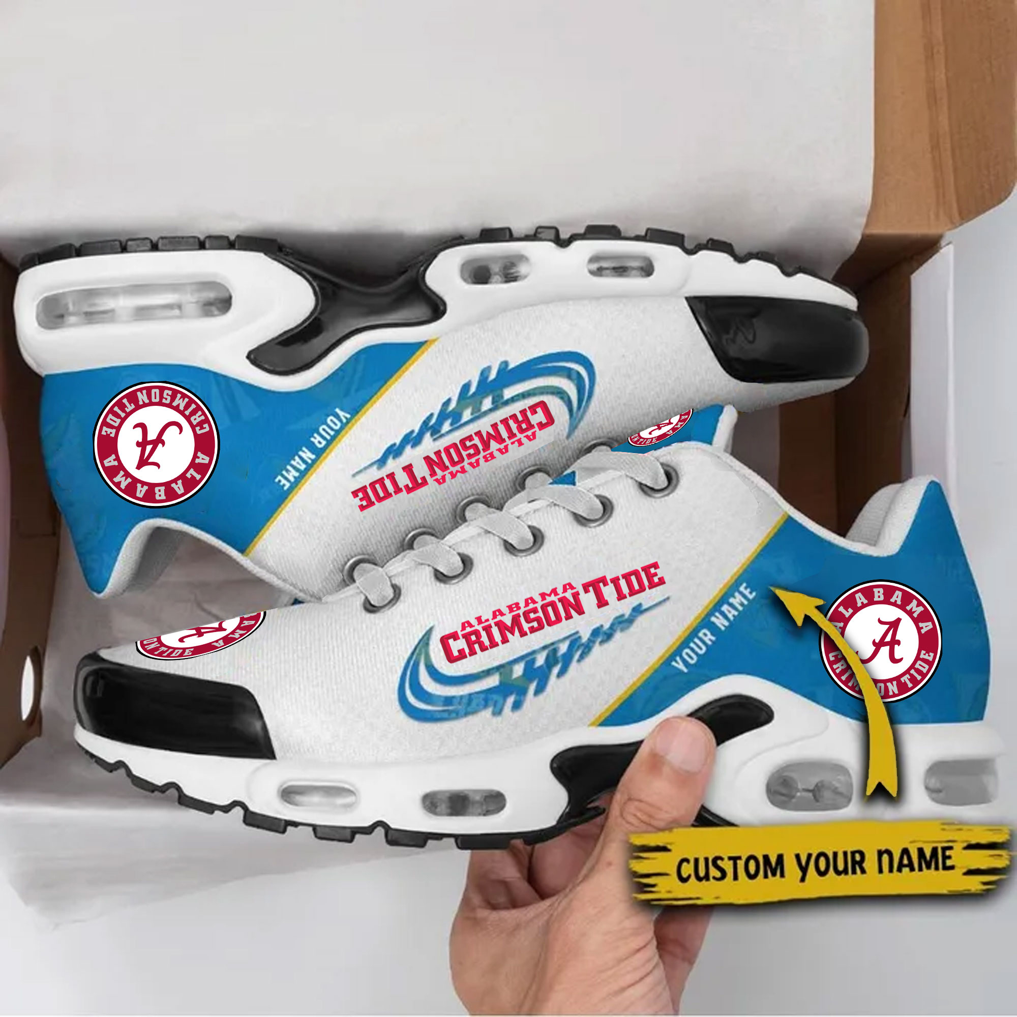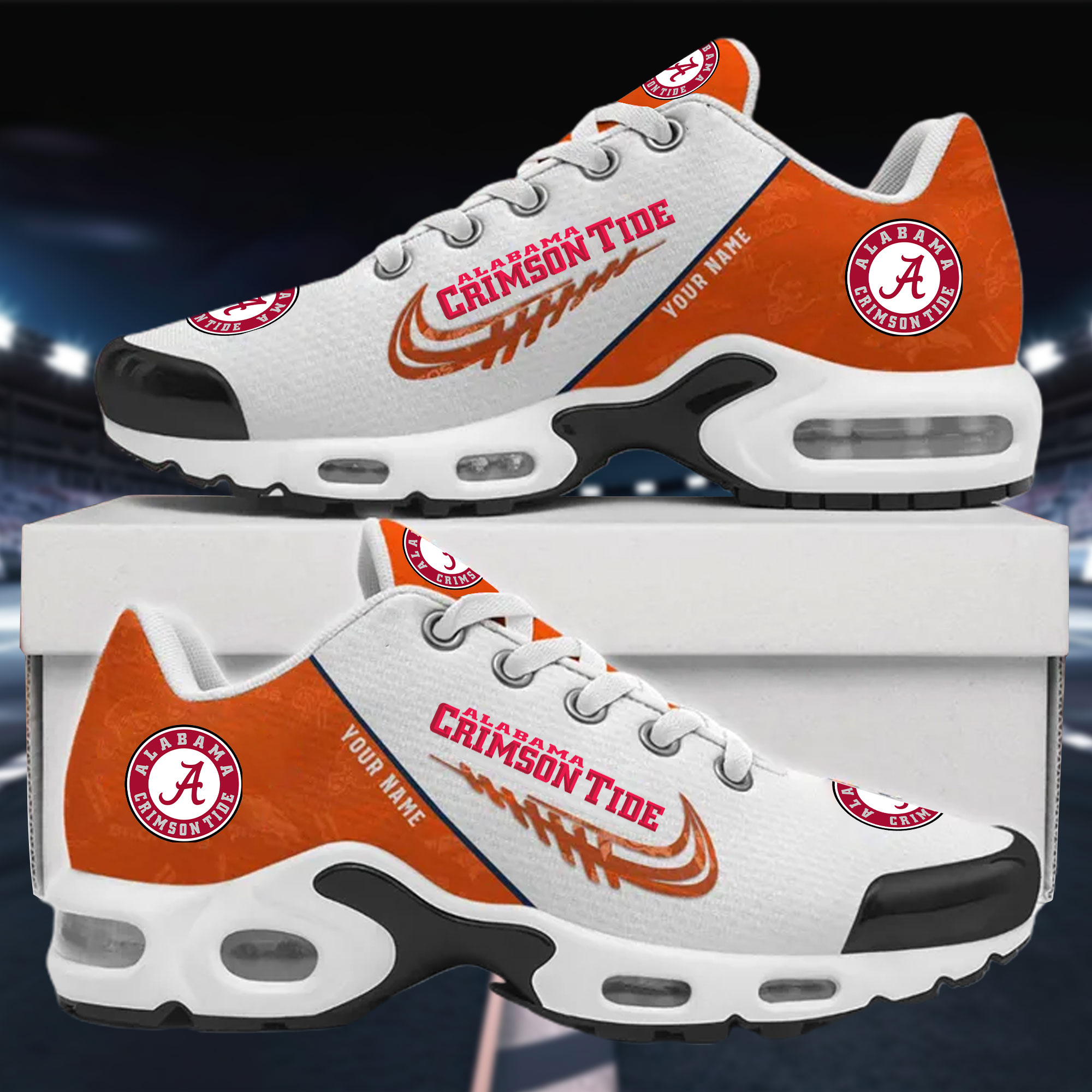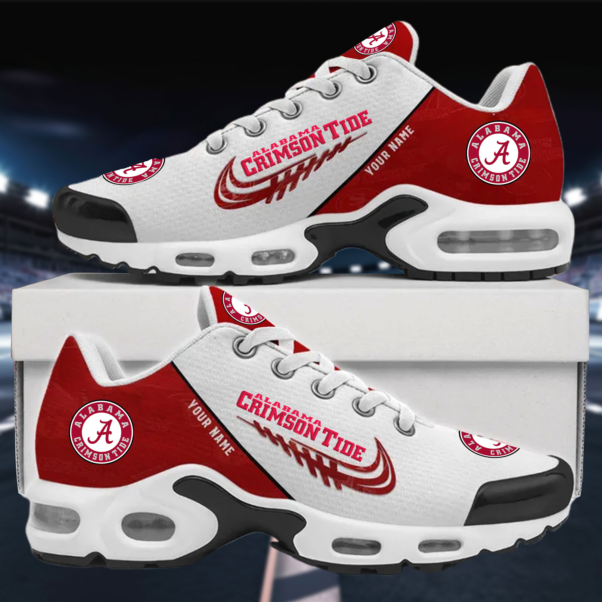 With the launch of the exclusive Made-to-Order service, you can make your sneakers/shoes unique by not only having your special Alabama Crimson Tide Emblem but also your Name printed on the shoes.