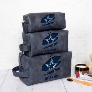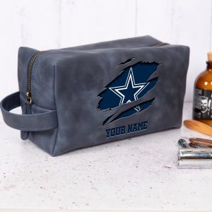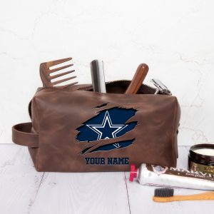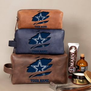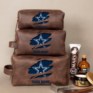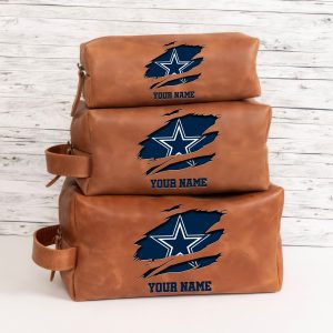 Dallas Cowboys Leather Toiletry Bag For Men, Custom Your Name, 2D In Leather Dopp Kit Bag, Football Fan Gifts, Gift For Dad V01