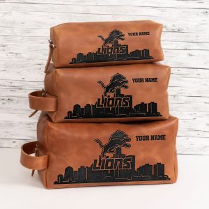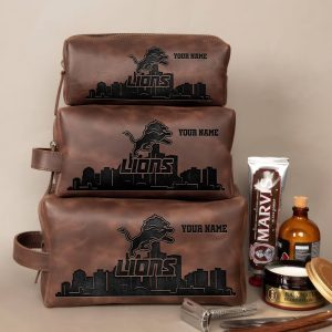 Detroit Lions Leather Toiletry Bag For Men, Custom Your Name, 2D In Leather Dopp Kit Bag, Football Fan Gifts, Gift For Dad V01