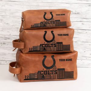 Indianapolis Colts Leather Toiletry Bag For Men, Custom Your Name, 2D In Leather Dopp Kit Bag, Football Fan Gifts, Gift For Dad V01