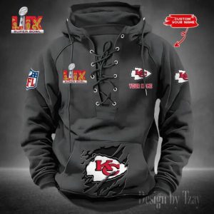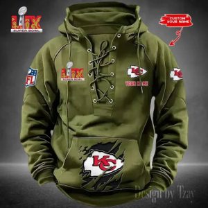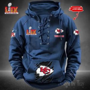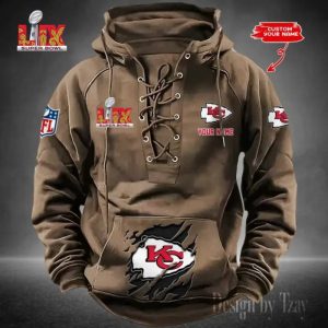 Kansas City Chiefs Lace-Up Cross V-Neck Drawstring Hoodie