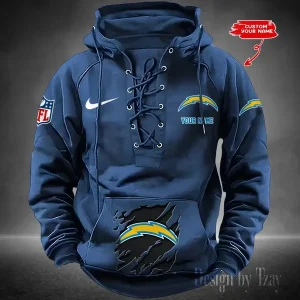 Los Angeles Chargers Lace-Up Cross V-Neck Drawstring Hoodie