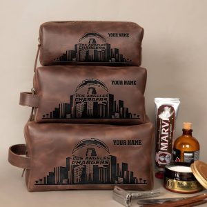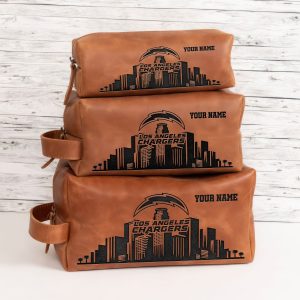 Los Angeles Chargers Leather Toiletry Bag For Men, Custom Your Name, 2D In Leather Dopp Kit Bag, Football Fan Gifts, Gift For Dad V01