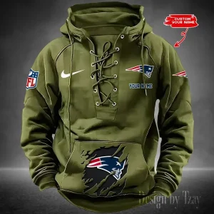 New England Patriots Lace-Up Cross V-Neck Drawstring Hoodie