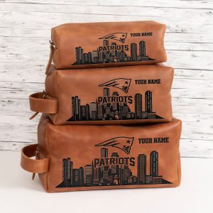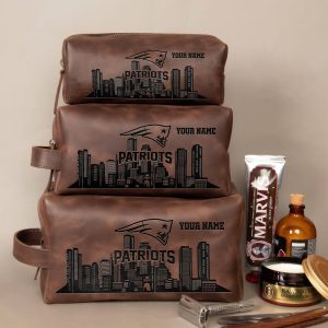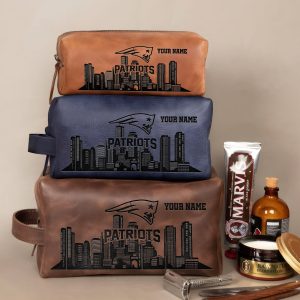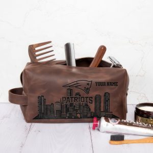 New England Patriots Leather Toiletry Bag For Men, Custom Your Name, 2D In Leather Dopp Kit Bag, Football Fan Gifts, Gift For Dad V01