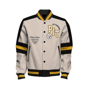Hi there!! Are you looking at our Pittsburgh Steelers Bomber Jacket . These Bomber Jacket are unique, made with love, and they are perfect accessories for your outfit. The Pittsburgh Steelers Emblem on the shoes makes it a perfect item for any Pittsburgh Steelers Lovers.