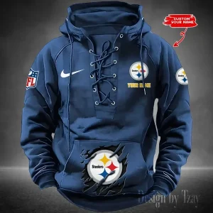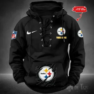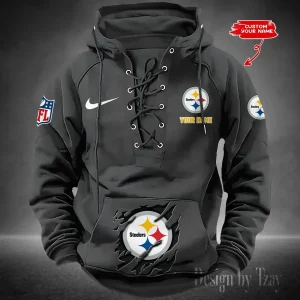Pittsburgh Steelers Lace-Up Cross V-Neck Drawstring Hoodie