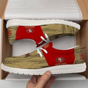 Hi there! You are looking at our San Francisco 49ers shoes. These styles are unique, made with love, and they are perfect accessories for your outfit. The San Francisco 49ers logo on the shoes makes it a perfect item for any 49ers lover.