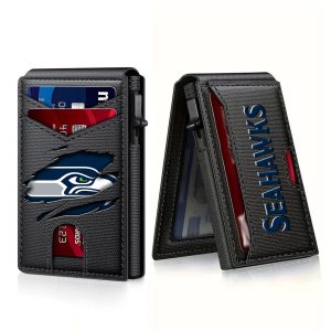 Seattle Seahawks – Football RFID Blocking Pop Up Card Holder, Fashion Card Case Wallet