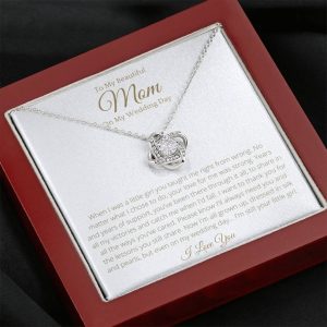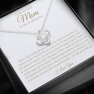 ✓Sentimental Value: To My Beautiful Mom on My Wedding Day Love Knot Necklace comes with a thoughtfully written message card: “To My Beautiful Mom on my wedding day When I was a little girl you taught me right from wrong. No matter what I chose to do, your love for me was strong. Years and years of support, you’ve been there through it all. to share in all my victories and catch me when I’d fall. I want to thank you for all the ways you’ve cared. Please know I’ll always need you and the lessons you still share. Now I’m all grown up, dressed in silk and pearls, but even on my wedding day… I’m still your little girl. I Love You”