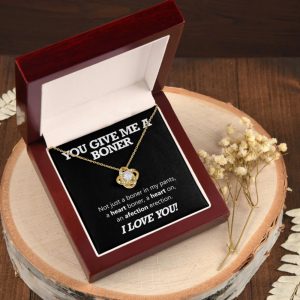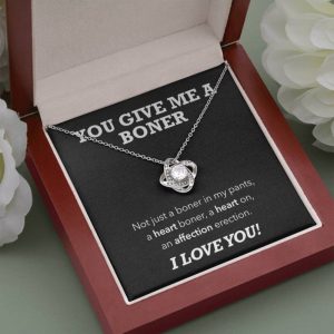 ✓Sentimental Value: You Give Me A Boner Love Knot Necklace comes with a funny written message card: “You give me a boner. Not just a boner in my pants, a hear boner, a heart on, an affection erection. I love you!”